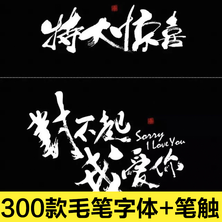 300款毛笔字体,另外赠送墨迹笔刷和笔触