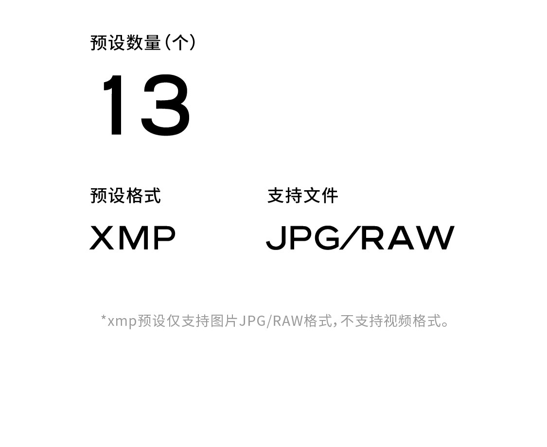 13个xmp预设,可用于LR7.3以上版本、PS和手机LR