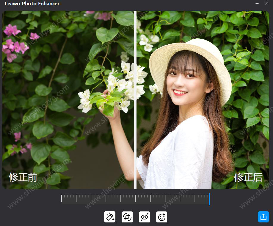 Photo Enhancer 采用强大的 AI 技术,可以通过锐化细节和提高图片分辨率来修复模糊和朦胧的图像,而不会损失质量。此外,它还可以通过白平衡调整、色彩改善、曝光补偿等来修复图像。当然,修饰皮肤、祛斑、放大眼睛的功能也不会缺席。