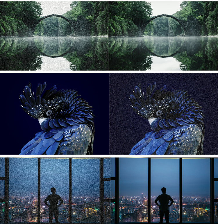 可在无任何预约、任何光线下拍摄。使用第一个基于AI的降噪工具消除噪音并恢复图像中的清晰细节。任何降噪工具都可以消除噪音 ,真正难的地方是分清噪音和细节之间的区别。DeNoise AI能在消除噪音同时恢复原始图像细节,帮助您获得100%的最佳质量。