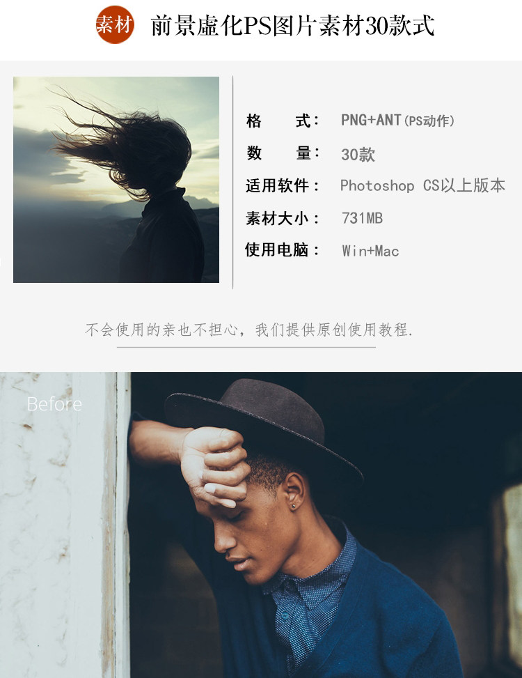 包含atn Photoshop动作格式,可以直接使用,也包含30个PNG格式图片素材,改变叠加模式即可使用