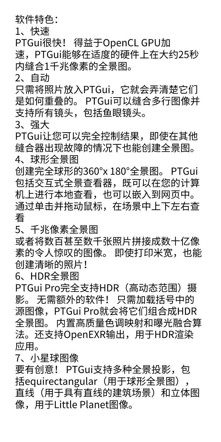 PTGui Pro是一款专业的全景拼接软件,可帮助用户快速制作一个完美的全景拼接图像。主要针对喜欢拍摄全景、长焦、广角的用户,对这类照片进行重新专业修正,支持HDR拼接、蒙版、视点矫正等,从而创造出高质量的全景图像。