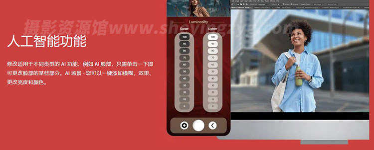 加速x80并使用世界上最先进的Al插件彻底改变您的编辑,拥有超过1000种功能、90多个专业照片预设、17个类别超过70多种照片叠加特效,使用简单,包含详细的使用视频教程。
