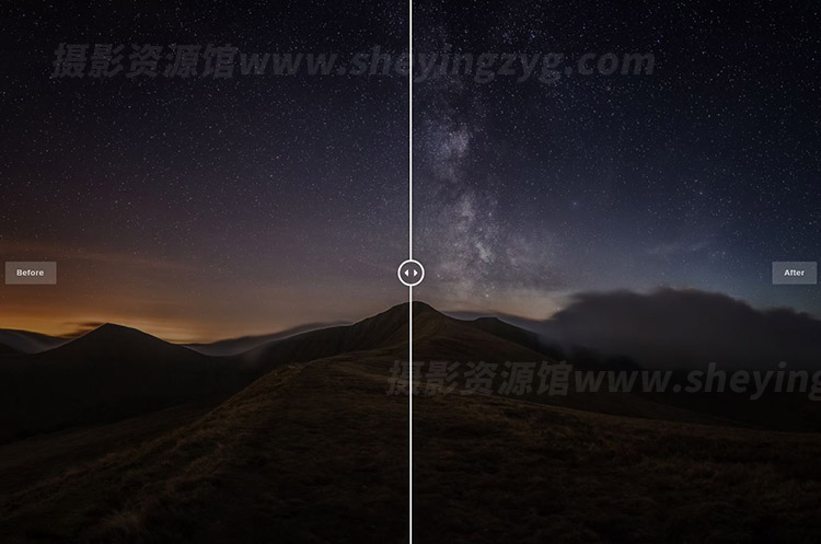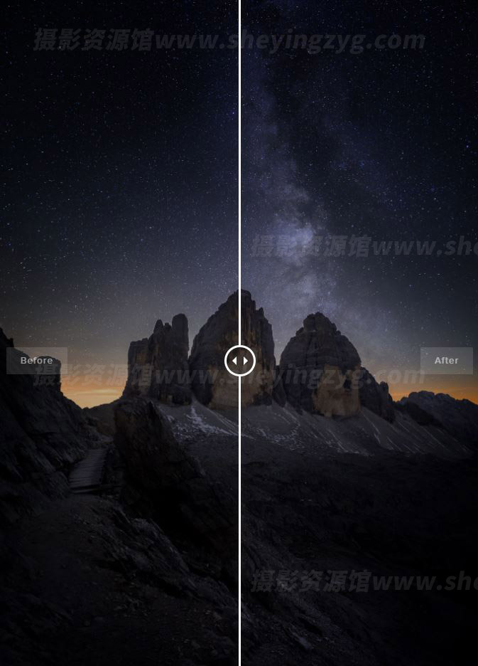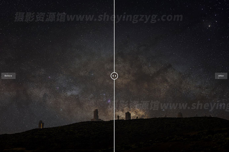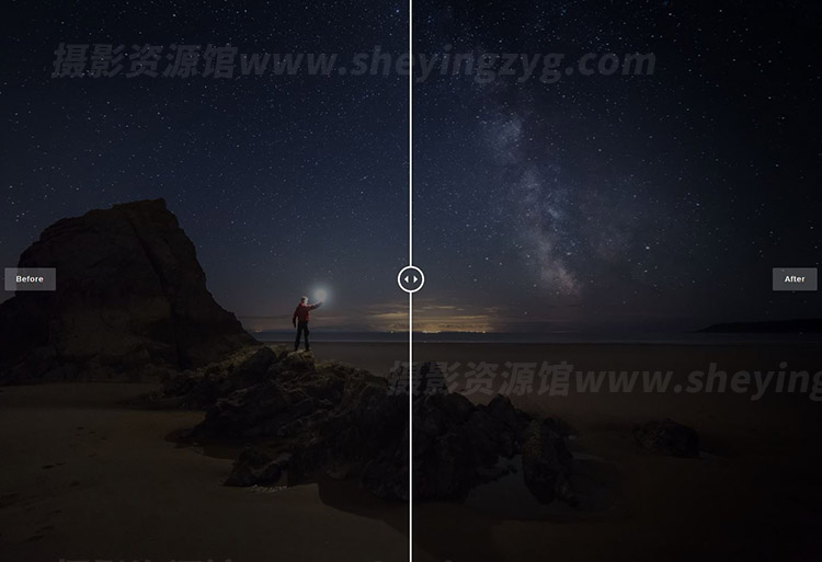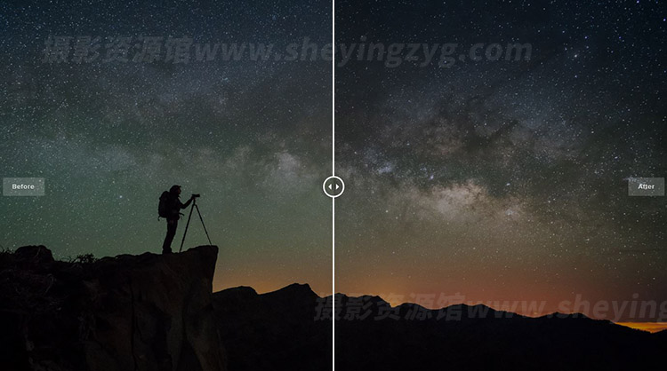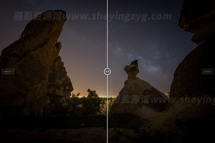 最后,使用我的本地调整预设添加最后的修饰并艺术地雕刻图像。只需使用提供的一些工具即可使天空变暗,使银河系变得流行,并为最亮的星星添加光芒。