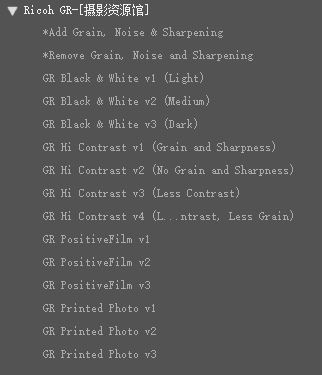 Ricoh GR 预设捆绑包包括: