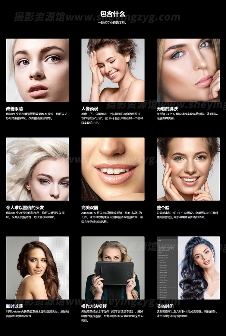 革命性技术与专业知识的结合。该套装包含六包您所需的最先进的肖像修饰工具。