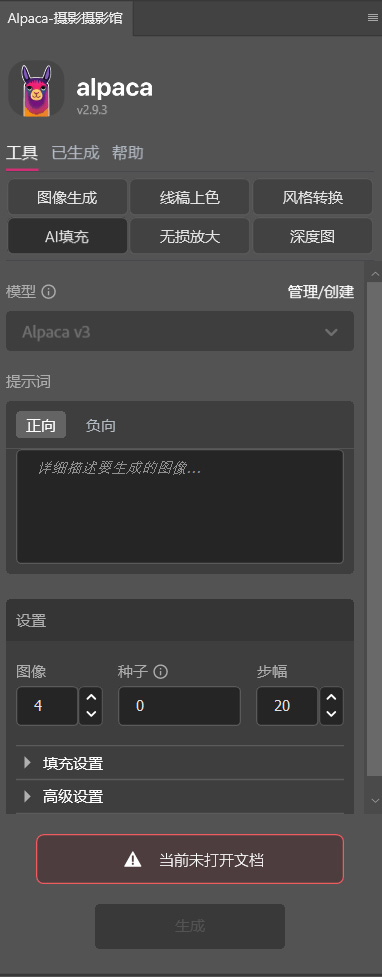 Alpaca2.9.3中文版插件是一款强大的Photoshop插件,带有最新的V3模型,可以轻松地完成文本转图像功能、上色素描图、线稿等任务是设计师和艺术家的好帮手。