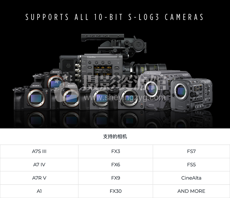 如果您的相机支持 10 位 S-Log3 拍摄,那么这款 LUT 包就兼容!如果您只有 8 位索尼相机?那就快来看看即将推出的 8 位 LUT 包吧。