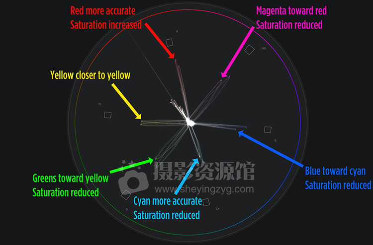 此包中的所有 LUT 都具有相同的 base corrections。这些选项包括稍微旋转每种颜色以校正不讨人喜欢的颜色。主要是黄色和红色。