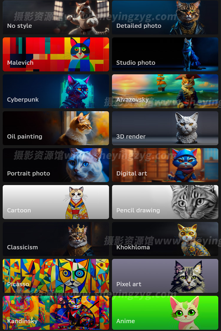 超多模型:提供 超过20种艺术风格模型,涵盖经典油画、抽象艺术、科幻场景、动漫风格等,满足不同审美需求。