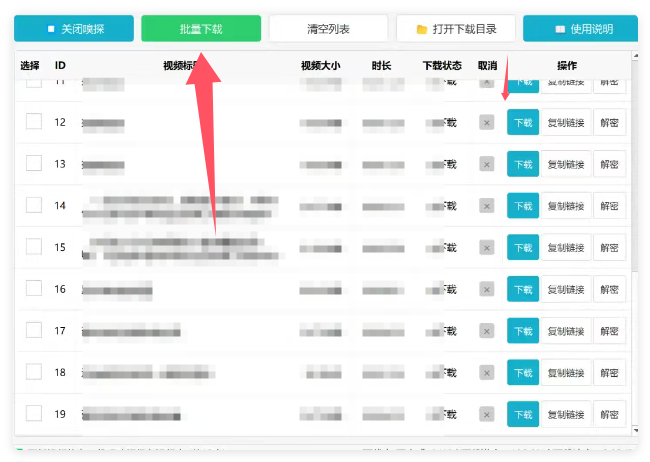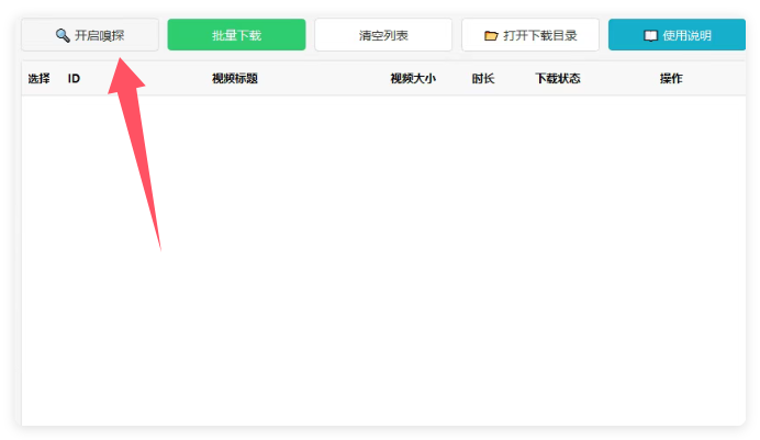 接下来我们打开视频下载器,选择开启嗅探。