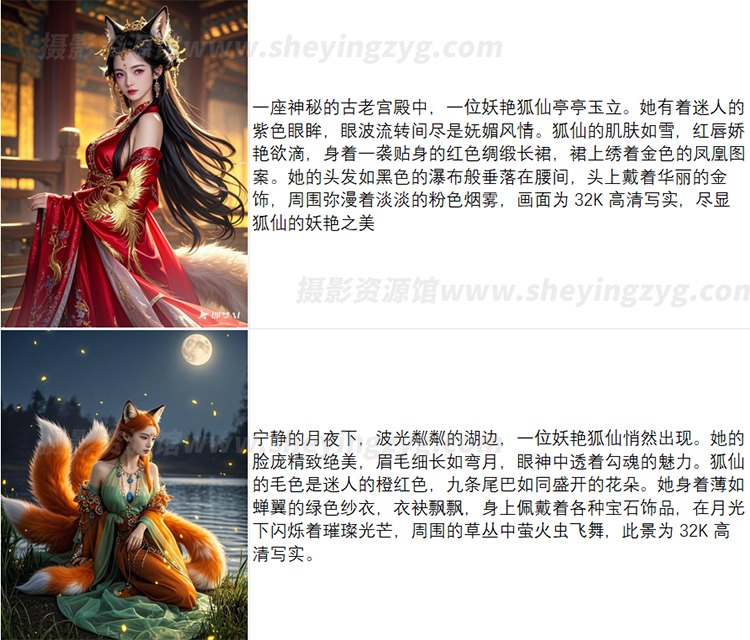 AI文生图提示词,包含各种美女、宠物、萌娃、老人、治愈风景、狐妖、二次元、头像类、汉服、海滩星空等各个领域,拿去直接可以用