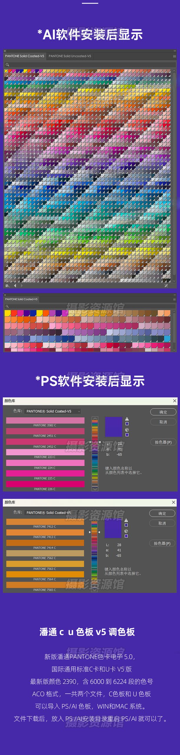 潘通色全套C卡U卡色板插件 pantone电子色卡色标簿PS/AI
