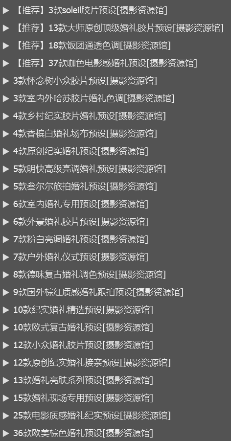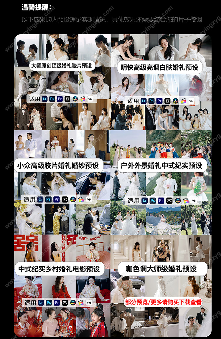 *包含内容:40套共860+款精选婚礼跟拍预设
