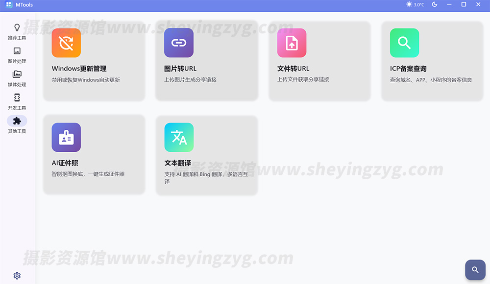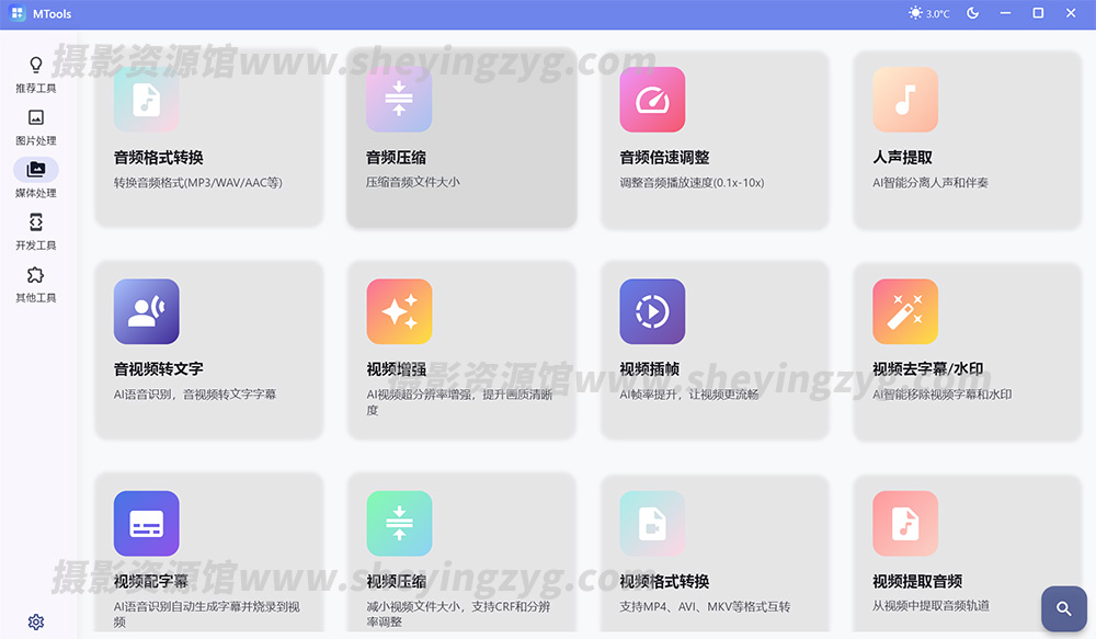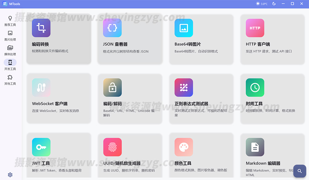内置了60+个功能,分为图片、视频、音频、开发和其他工具,支持图片压缩、视频压缩、抠图、人声伴奏分离、多图拼接、图片无损放大和OCR文字识别等。支持WIN