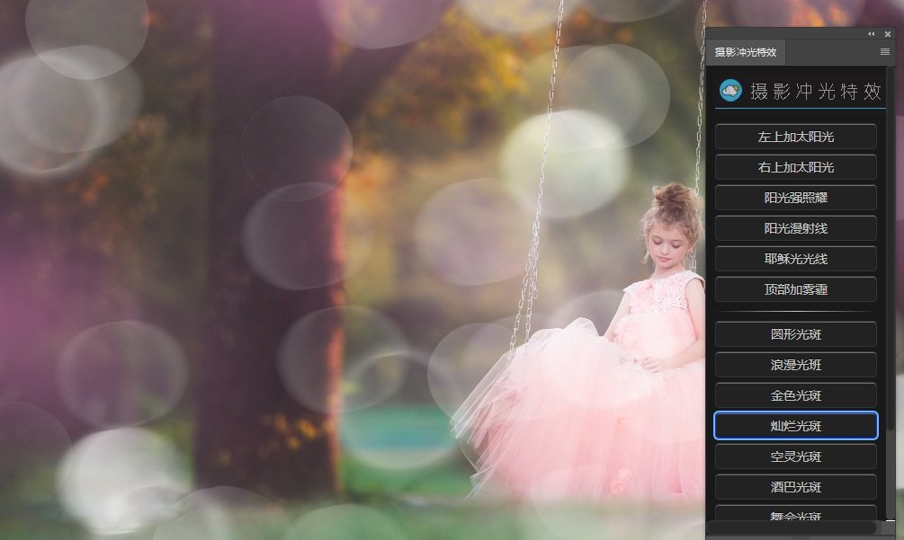 一键添加各种光斑,光效,可给森系照片添加仙境光斑、雾霾,夜景照片添加夜景光斑,简直就是影楼后期必备神器