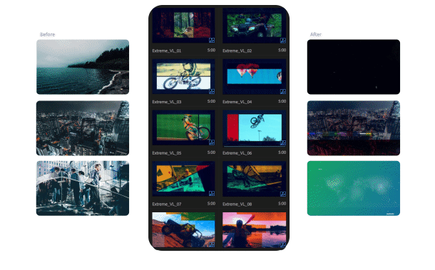 超过1000种专业预设和效果元素。 视频库包含超过250种随时可用的礼物和来自12个不同类别的1000种元素,可以帮助您在专业级别上制作独特的视频。华美,企业,极端,小故障,伤心的男孩,墨水涂抹,字母,现代,Showreel,体育,城市,葡萄酒。每个类别都包含不同的元素,创造独特的时尚外观 只需单击一下即可应用预设,更改文本并使用“控制面板”更改效果和颜色