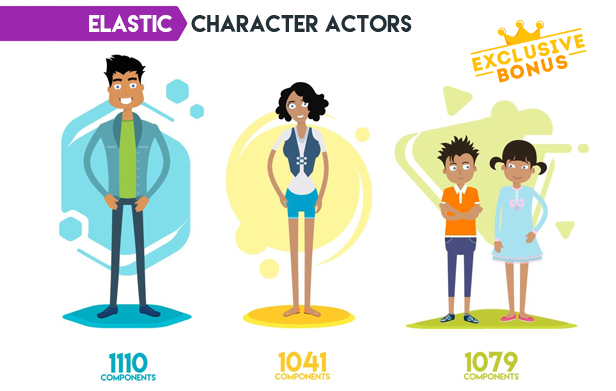很强大的一组MG动画模板,总共超过5000个MG动画元素,人物角色/场景动画/图形动画/文字动画/等,做MG短片必备模板