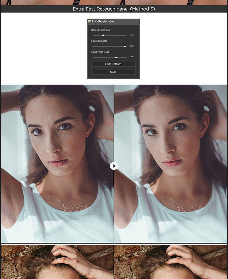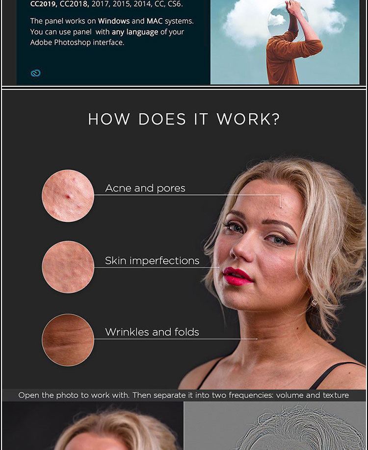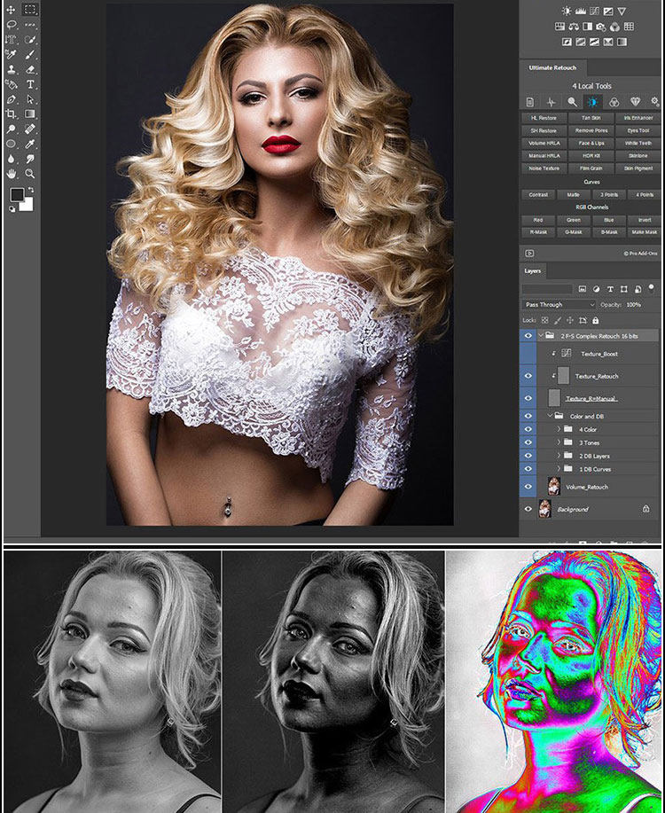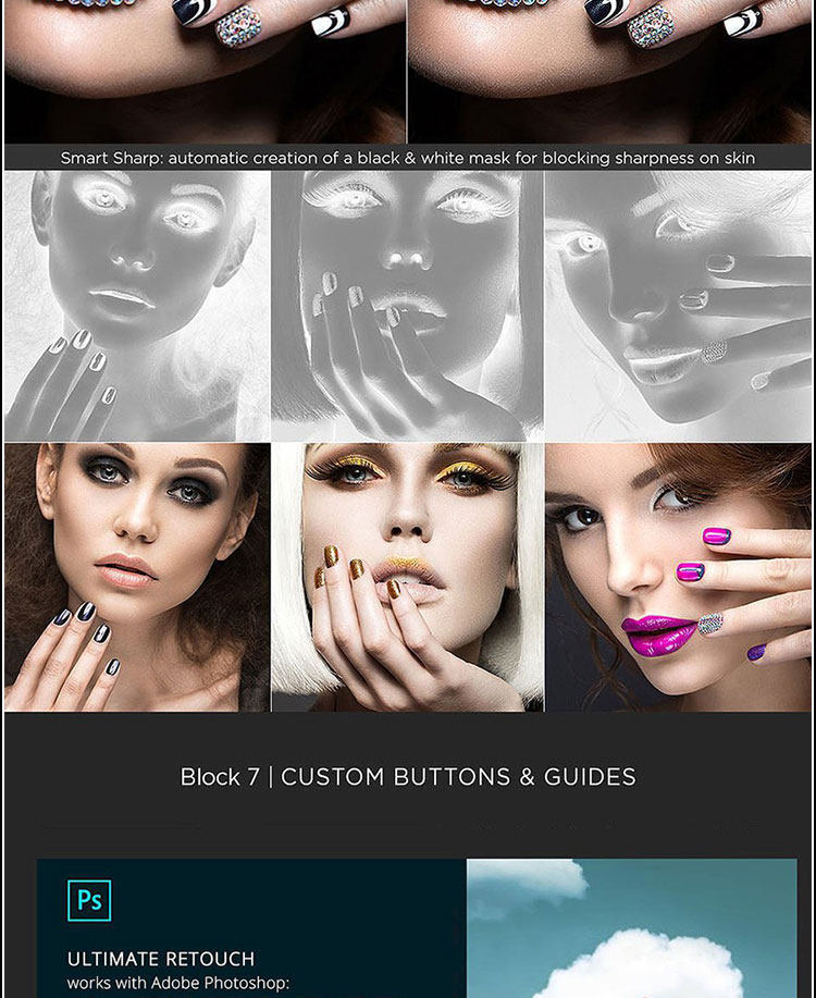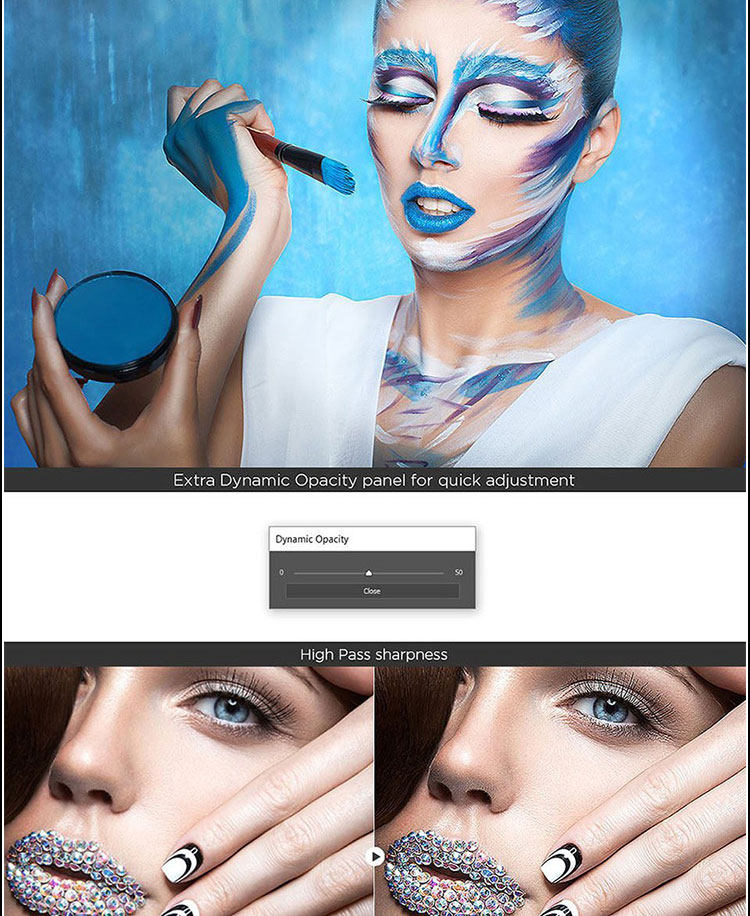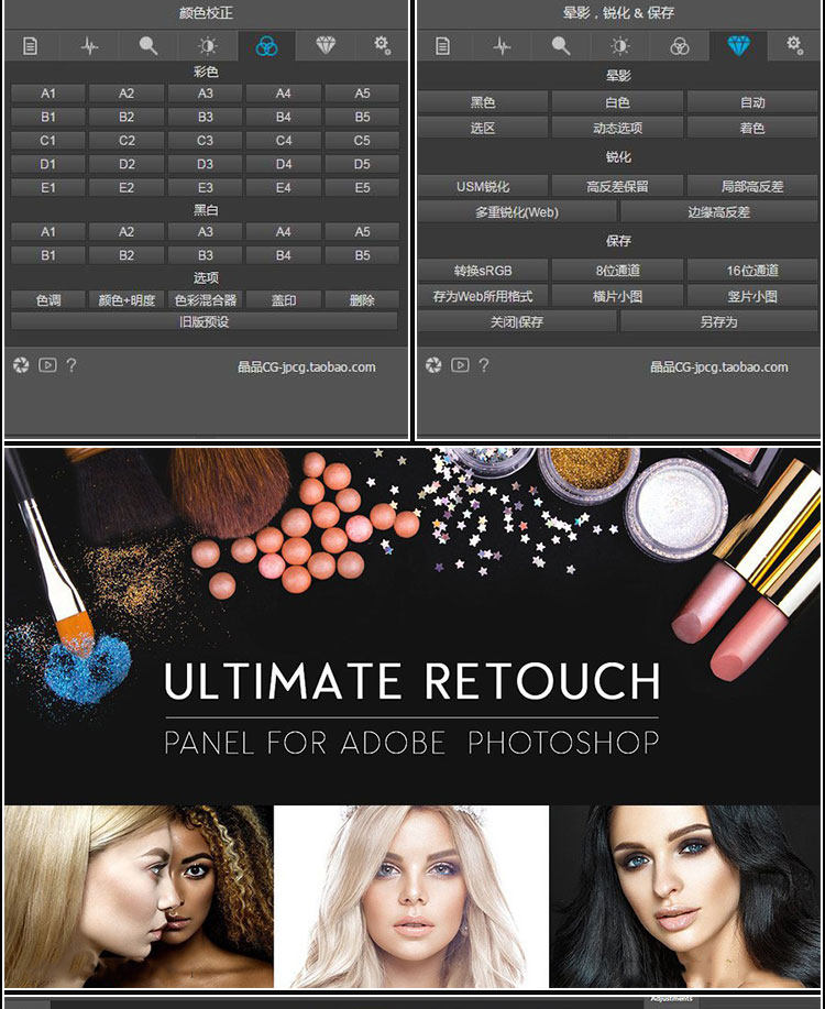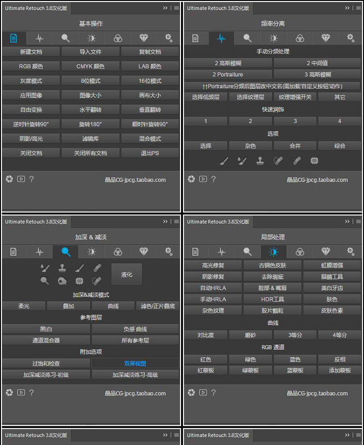 Ultimate Retouch修饰面板更新到3.8,新版里自带三个面板:1.Ultimate Retouch2.Retouch Tools 3.Blendit包含超过15种不同类型的快速和手动修饰和其他200种功能的Photoshop CC-CC 2019。