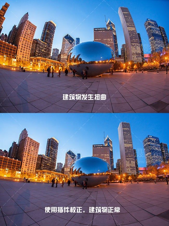 鱼眼镜头用于风景记录也是好用的,但画面上建筑物会呈现弧形,这就需要后期矫正了,Fisheye-Hemi 就是一个很好的矫正插件。