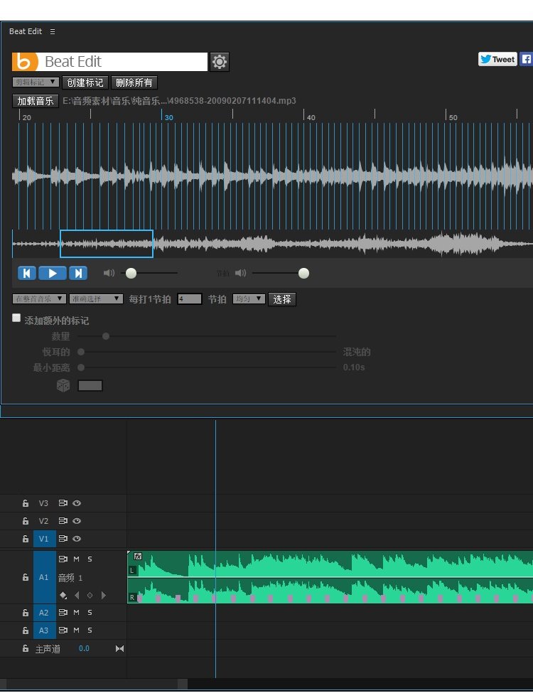 插件介绍:beatedit 是一个音乐鼓点节拍自动剪辑扩展插件,可以自动检测音频文件根据音乐的节拍鼓点生成时间线然后选择需要剪辑的素材,自动完成剪辑工作,还可自动/手动选择鼓点位置,编辑开始位置,让剪辑变得简单